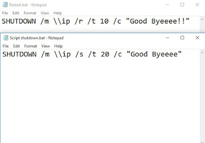 SHUTDOWN /m \\IP Address /r /t 10 /c “Good Byeeee!!”