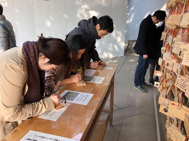 Taisuke kindly brought three wooden plaques for us so we could write our wishes and hang it up on the wall. Fun fact: they have a burning ceremony to clear the wooden plaques once they fill up too much.