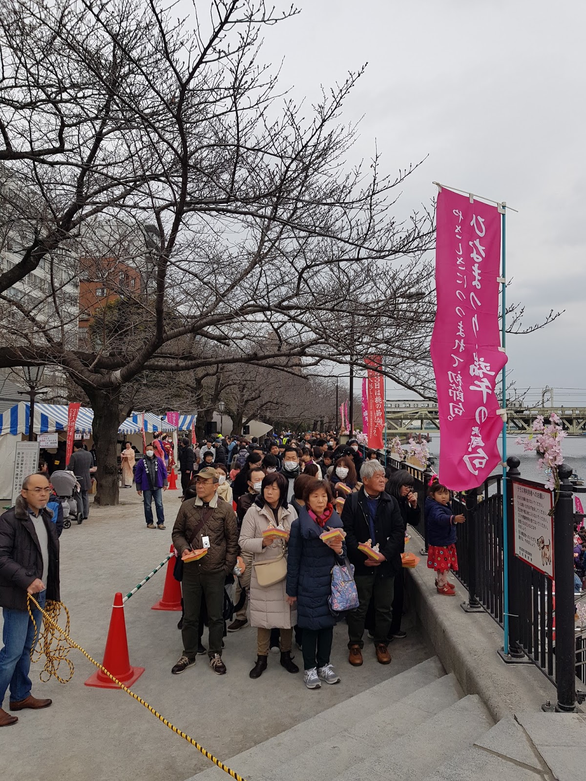 First up, we headed to Asakusa as there was a special event by Sumida Park by the river. Local parents and children were queuing up with traditional paper dolls of the emperor and empress from the Heian period.