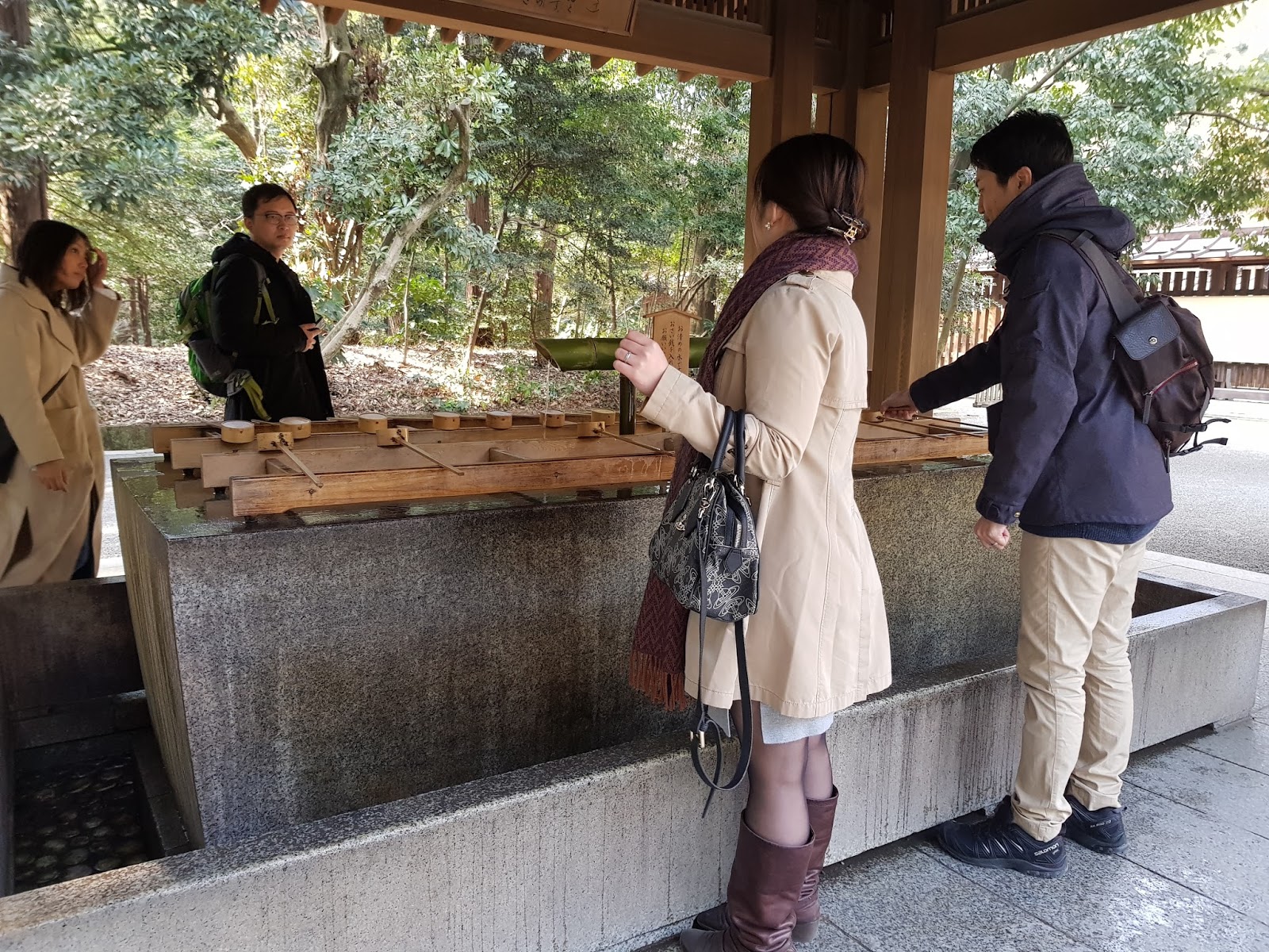 Before entering the shrine, there were steps required to prepare one’s self. Firstly, scoop the water with the ladle and wash your hands starting with the left. Then rinse your mouth with some water from one of the hands and pour the remaining water down its handle.