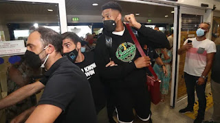 Λίγο πριν το μεσημέρι, ο Γιάννης Αντετοκούνμπο και ο αδελφός του Θανάσης έφτασαν στην Ελλάδα ως πρωταθλητές του NBA. Ο Έλληνας σούπερ σταρ και MVP των τελικών του ΝΒΑ, είχε προϊδεάσει τους Έλληνες για την επιστροφή του στην Ελλάδα μαζί με τον μεγαλύτερο αδερφό του. «Ερχόμαστε και φέρνουμε και το κύπελλο» είχε γράψει χαρακτηριστικά στο twitter ο Γιάννης Αντετοκούνμπο.