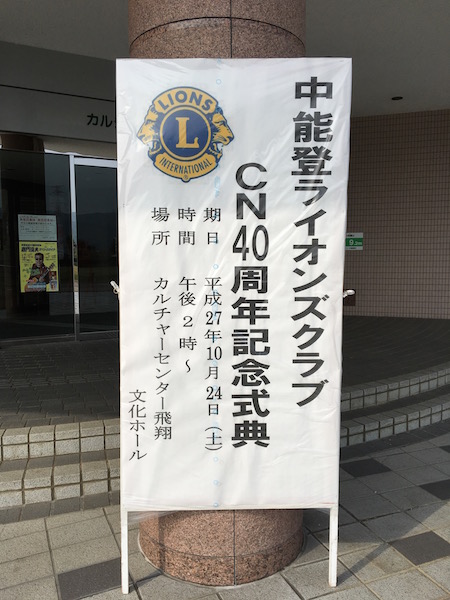 10月24日(土)。午後2時から中能登町・カルチャーセンター飛翔にて中能登ライオンズクラブCN40周年記念式典があり、能登LCメンバー5名で出席しました。 中能登LCは羽咋LCをスポンサークラブとして結成され、40周年を迎えました。 40周年、おめでとうございました! 素晴らしい式典でした。