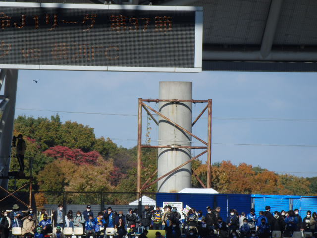 反対側ホームのゴール裏には煙突のようなものが?見えたが、