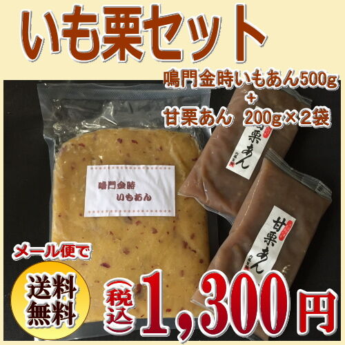 鳴門金時いもを皮ごと使い、卵やばたー、ミルクなどを加えて仕上げた「鳴門金時いもあん 500g」と、白あんをベースに天津甘栗のみじん切りを練りこんだ「甘栗あん 200g」を2袋セットにしました