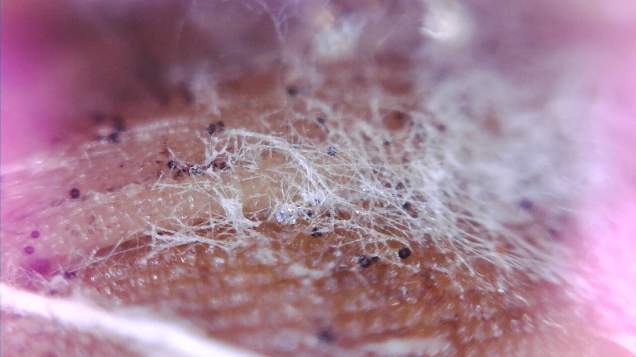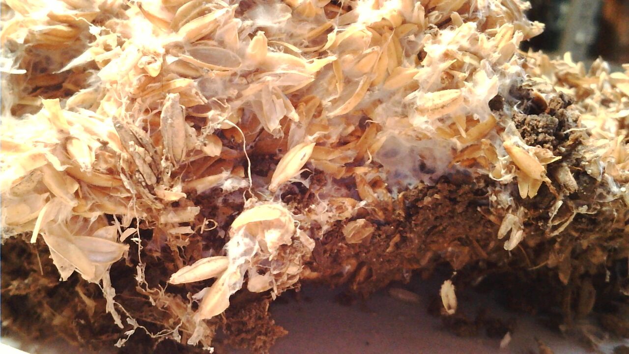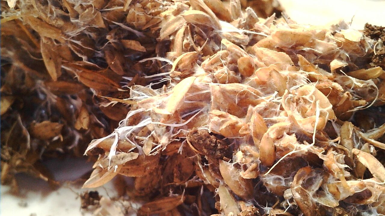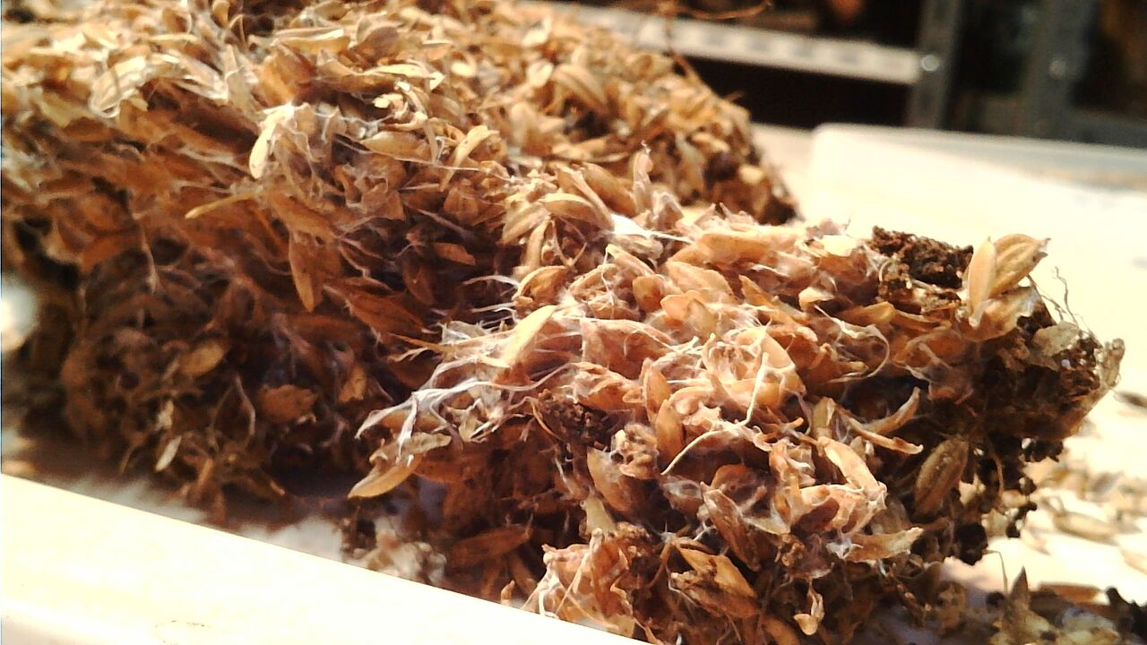 籾殻に繁殖した、菌糸の写真を掲載します。