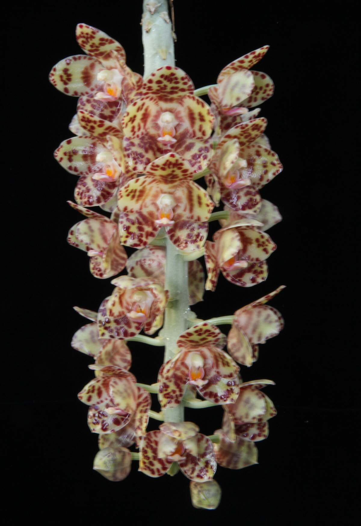この花茎は2回目の花です。花茎の先端が伸び始めた時、傷つけてしまい伸びが止まりましたが、3花茎が分枝して咲きました。