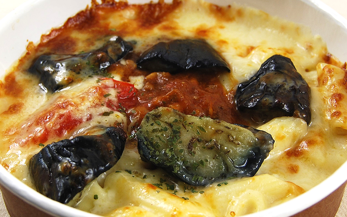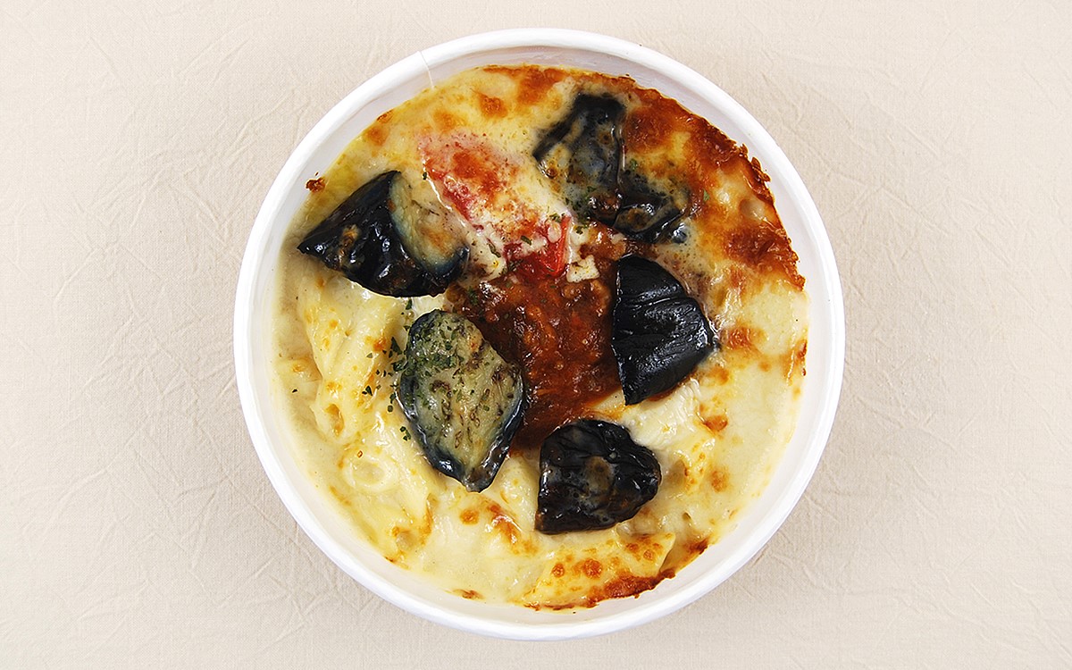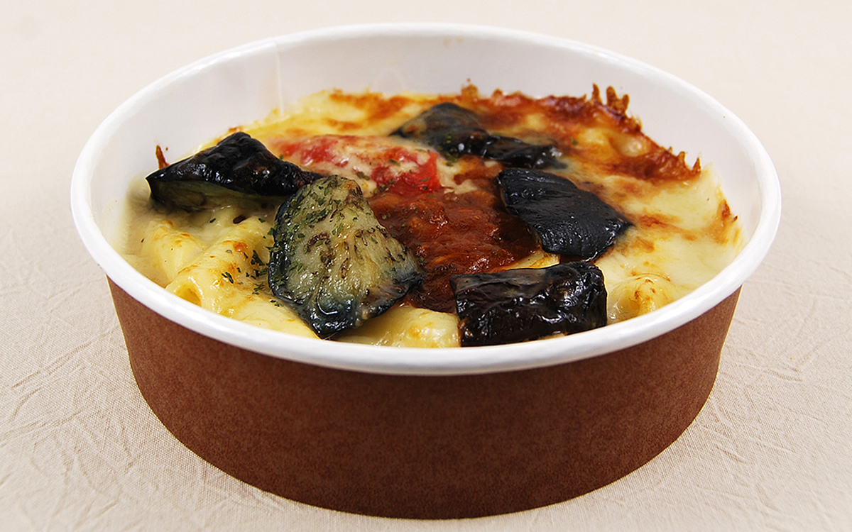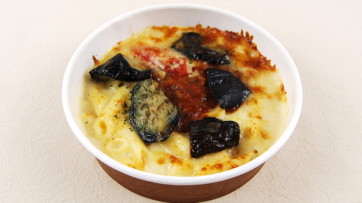 旬のなすを主役にした同商品は、ミートソースとペンネを使ったグラタン。なすとミートソースは相性が良く、パスタなどでも定番の組み合わせです。食べる際は電子レンジでしっかり温めて、チーズが溶けたアツアツの状態にしてからいただきましょう。