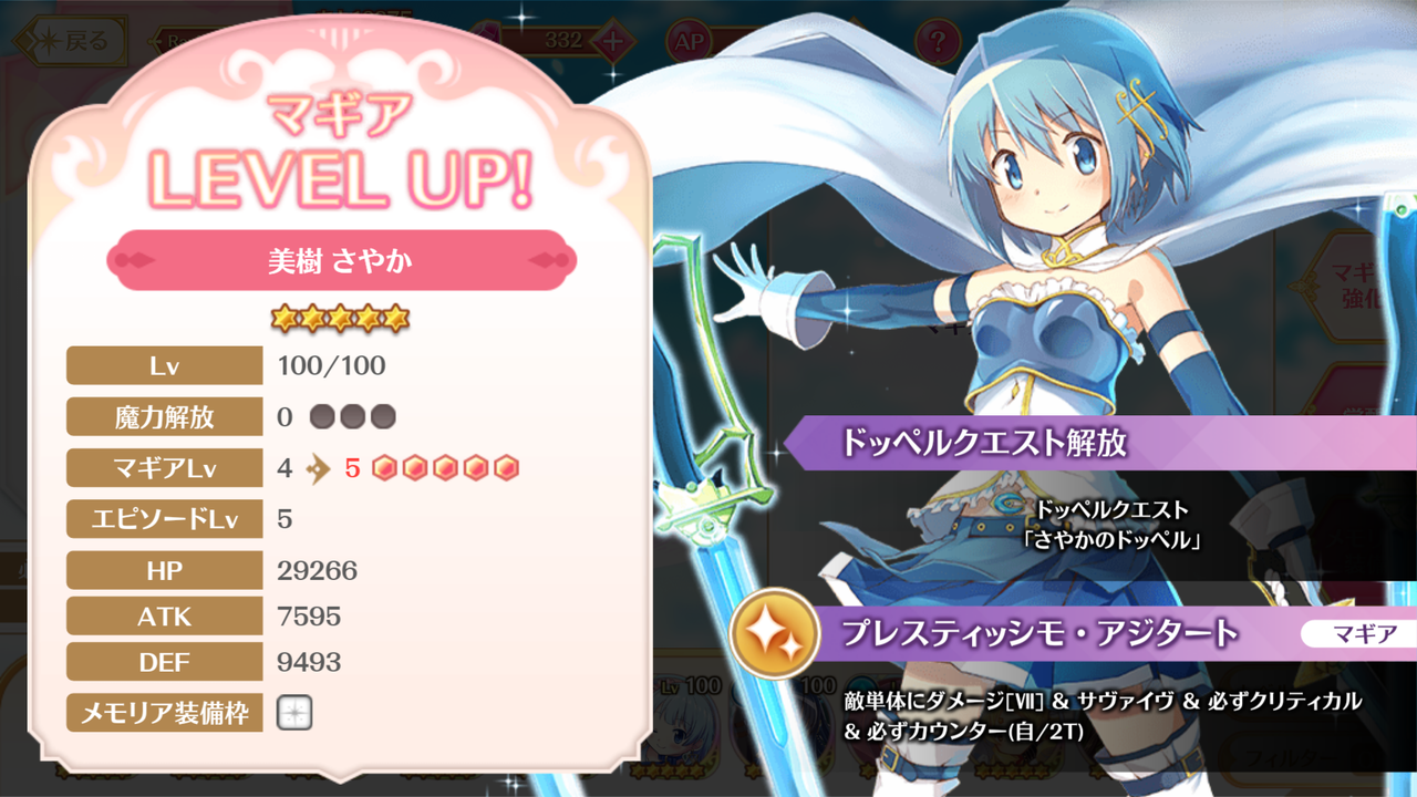 さやかのマギアレベル上げてドッペルしてきました(●´ω`●)