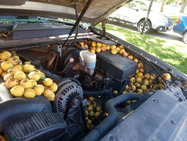 Όπως είπε ο Μπλι Φίσερ, όταν επέστρεψε σπίτι του μετά από ένα τετραήμερο επαγγελματικό ταξίδι, νωρίτερα αυτόν τον μήνα, ανακάλυψε ότι το φορτηγό του ήταν γεμάτο με μαύρα καρύδια, στο μέγεθος μοσχολέμονου.