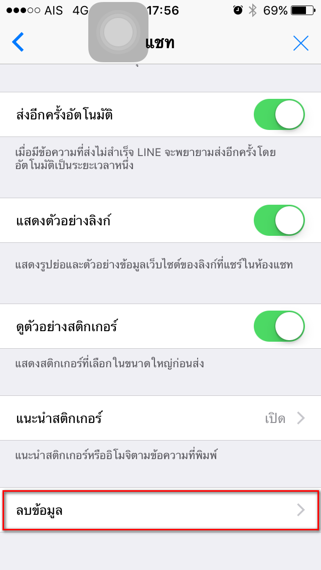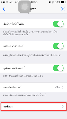 2.เมื่อเข้ามาที่เมนู “แชท” แล้วให่เลือกที่ “ลบข้อมูล”