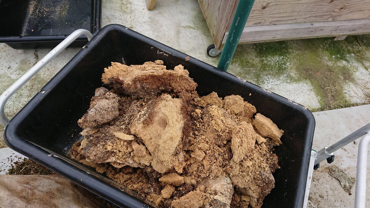 出来上がった白モミガラも、乾燥前はこの写真のように何が何だかわかりませんが、