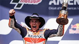 第15戦アメリカズGPのレポートを掲載。Repsol Honda Teamのマルク・マルケス選手が今季2勝目を挙げました。
