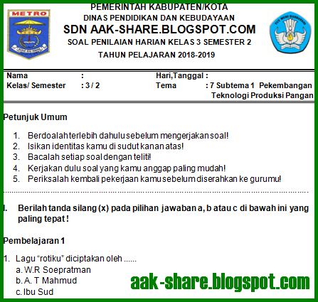 Bagi guru khusunya yang mengajar di kelas 3 tingkat SD/MI, selain mempersiapakan perangkat pembelajaran perlu juga membuat soal-soal penilaian harian. Nah, sebagai referensi saya akan membagikan secara gratis Soal Penilaian harian Kelas 3 Tema 7 Sub Tema 2 Semester 2/ Genap K13 Revisi 2018.