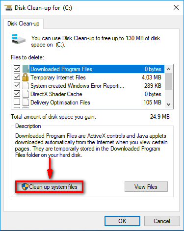 4. ระบบจะแสดงไฟล์และขนาดดังภาพด้านล่าง ให้ติ๊กเครื่องหมายถูก ในรายการที่ต้องการลบ