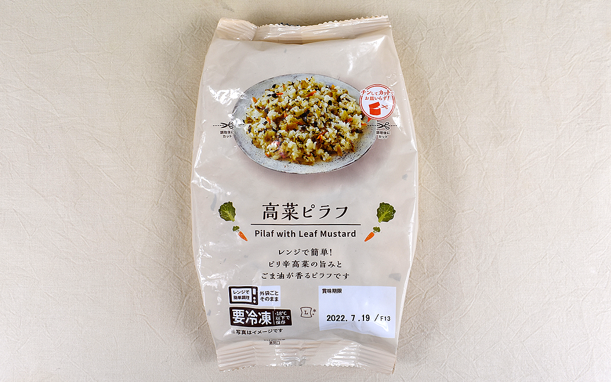 一方、ご飯は1粒1粒がふっくらとしたやわらかな口あたり。高菜とご飯を使った料理としてチャーハンも定番の組み合わせですが、同商品ではピラフならではのしっとりもちもちした舌触りを堪能できます。解凍してベチャベチャすることもなければ、逆にパサパサになってしまうこともありませんでした。