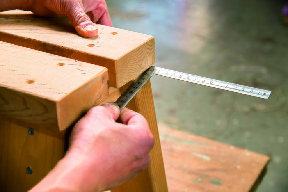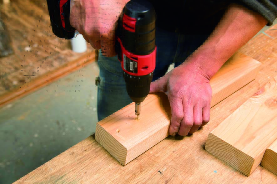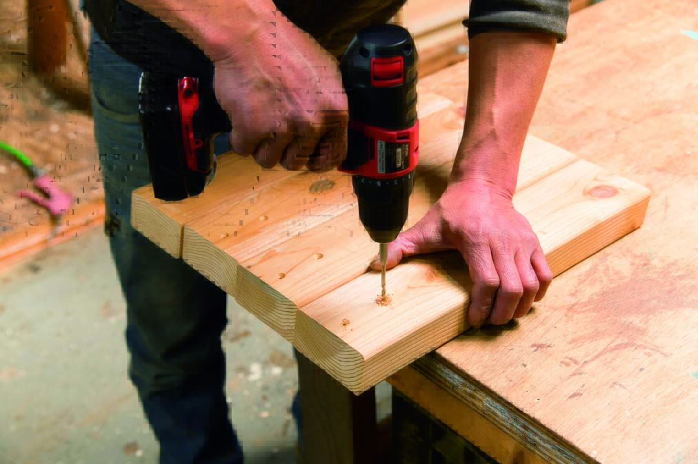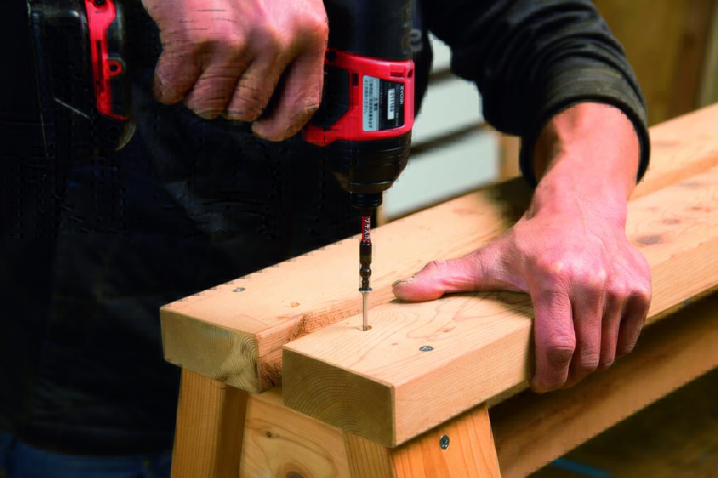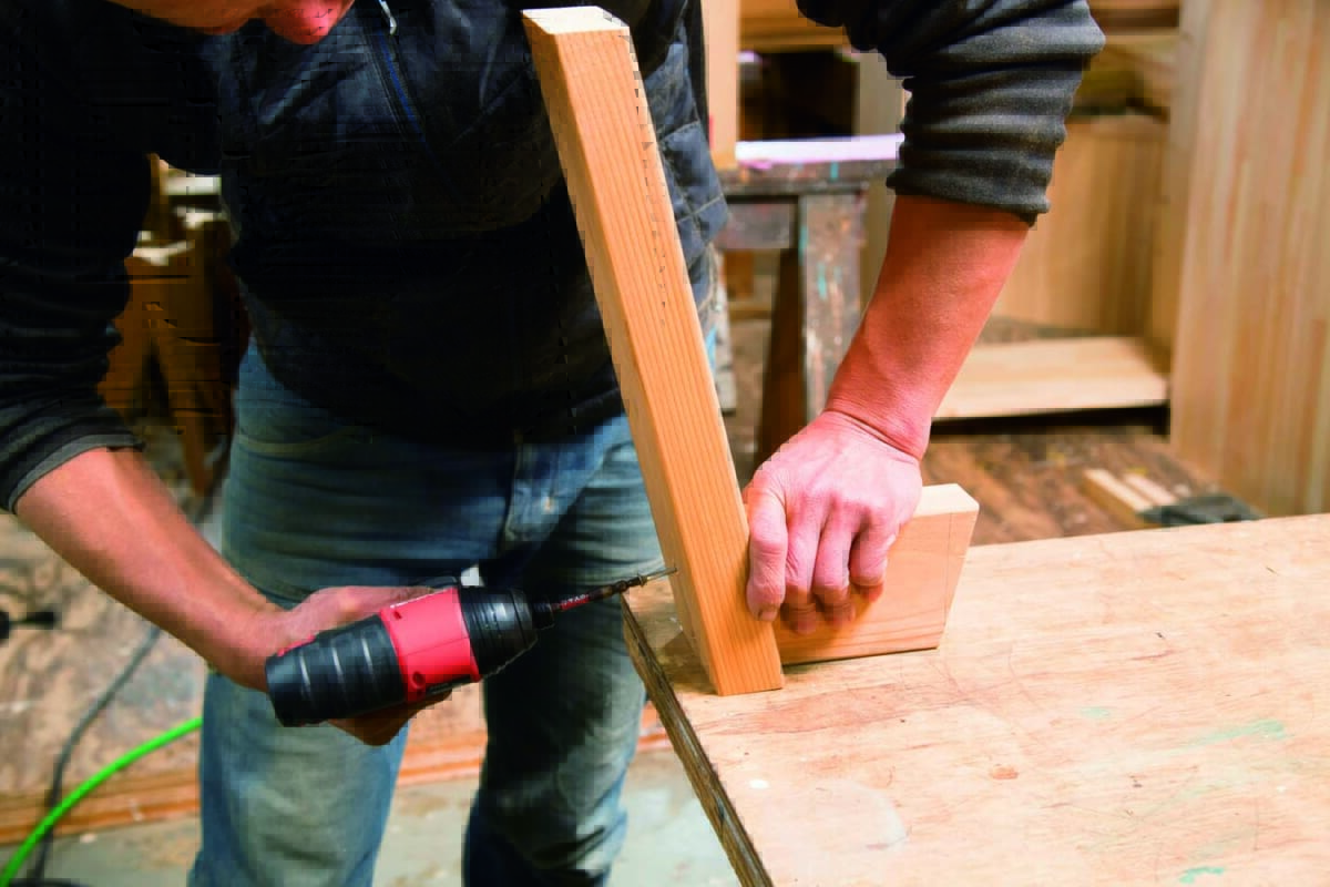10.8Vのドライバーは、軽量で操作性の高さが魅力。下穴あけのひと手間がビスを真っすぐ打ち込むコツだ。