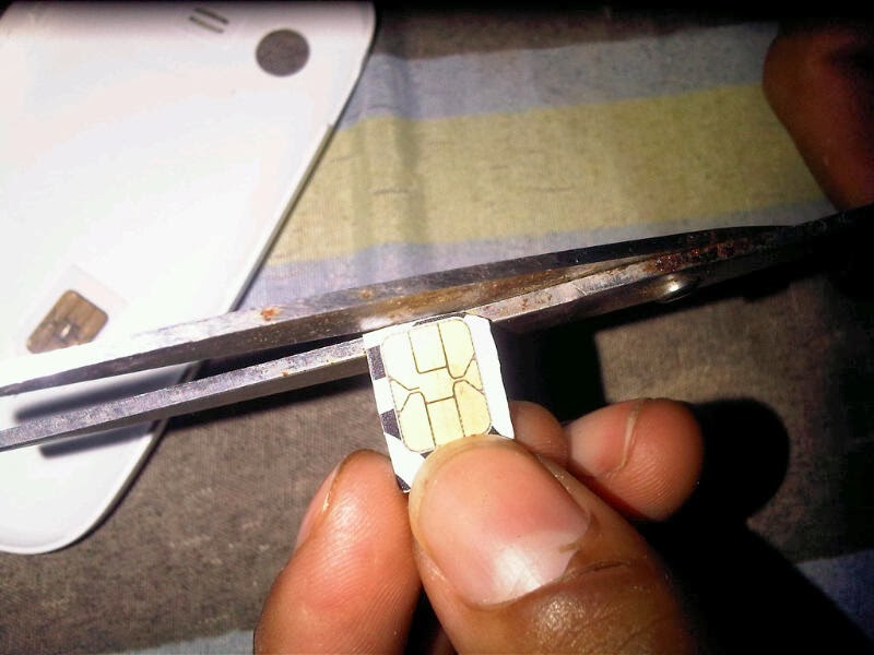 Tak ada lain caranya yaitu memotong lebih kecil hingga mendekati lempengan kuning kartu sim.