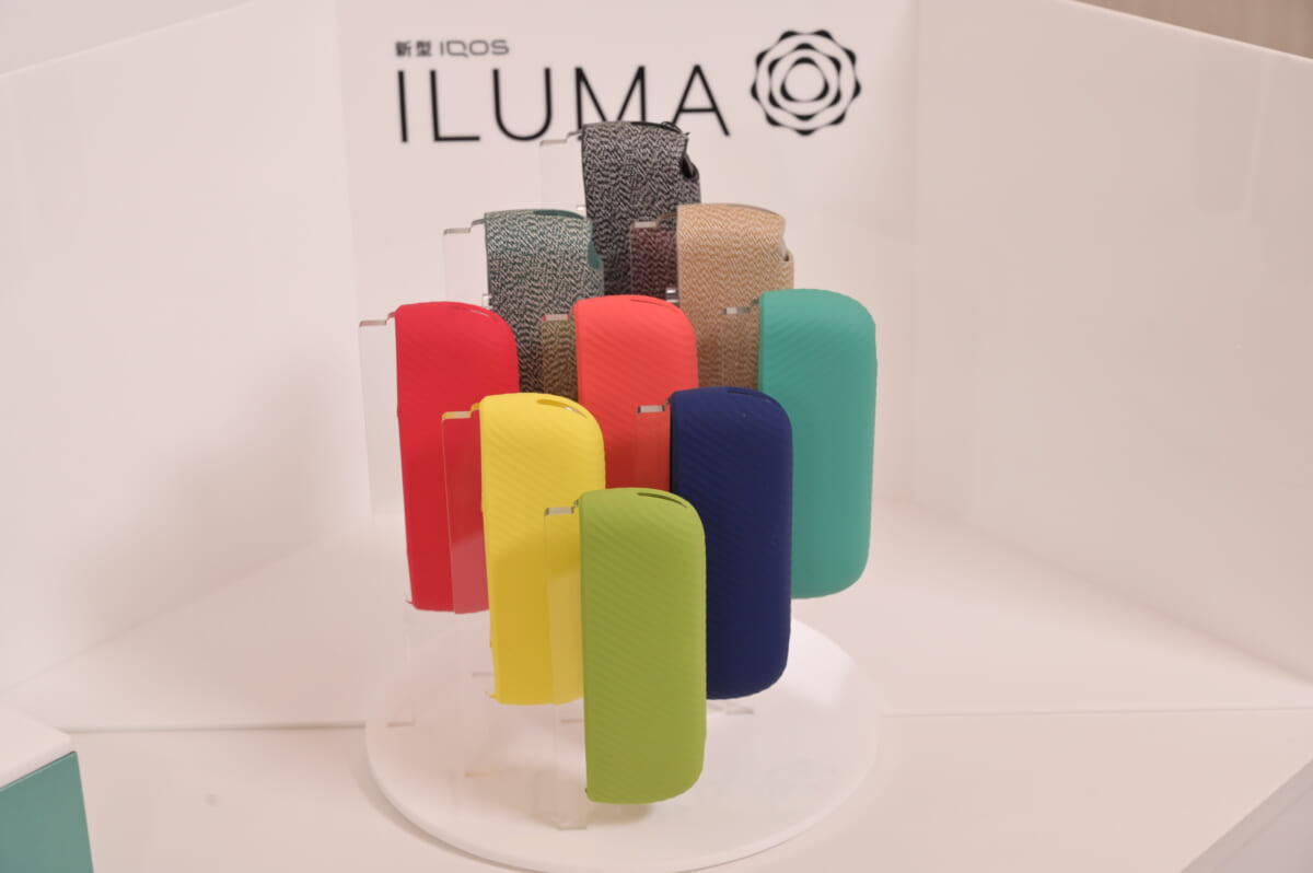次はIQOS イルマ プライム専用のアクセサリー。イルマ プライムの本体をカスタマイズできるラップカバーの生地はファブリックやマイクロファイバー、オーロラから選べます。付け替えはIQOS本体側のマグネットで取り付けるだけと簡単。全9色3素材。