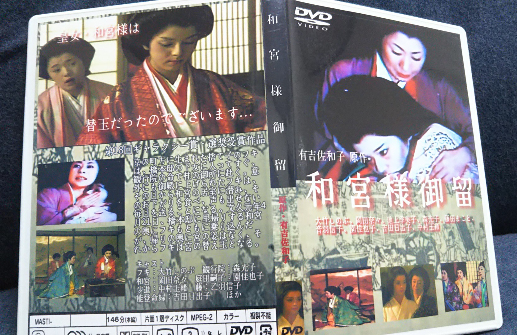 有吉佐和子原作『和宮様御留』。 二度のドラマ化の中で最も人気を誇るのは、最初に放送された大竹しのぶ版ですが、待てども暮らせどもDVDが出ない(泣) という訳で、ドラマ版『和宮様御留』のDVDを作ってみました。 かなり前に時代劇専門チャンネルで放送したやつです(^^; Blu-ray発売して欲しい! 頼むから発売してくれ🙏 いつか…。