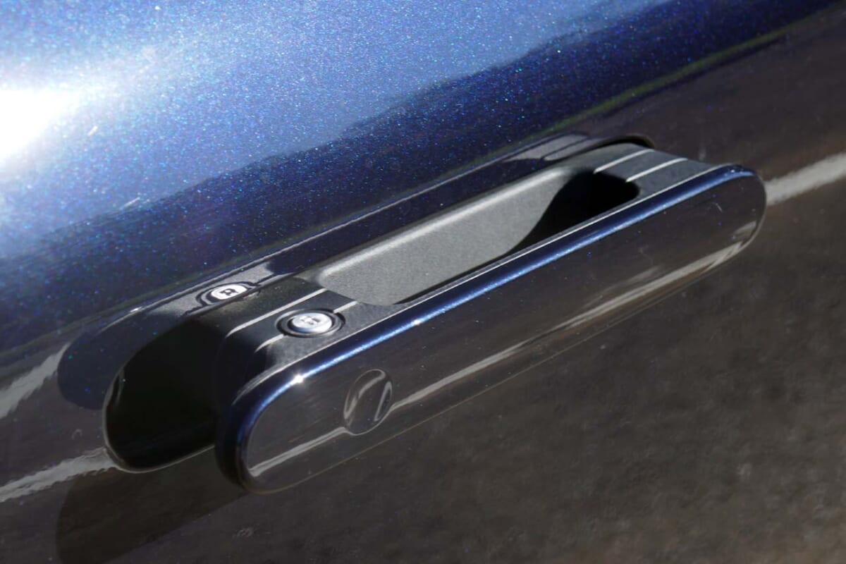 ネッソに試乗するためにキーで解錠ボタンを押すと、ドアの取っ手が自動的に手前に迫り出してきます。最近は空力特性を向上させるために。この手の「オートフラッシュドアハンドル」を採用するクルマが増え始めていますが、ネッソはいち早くこれを採用し、ここでもネッソは未来感に富んだコンセプトを持って開発されたことがわかります。