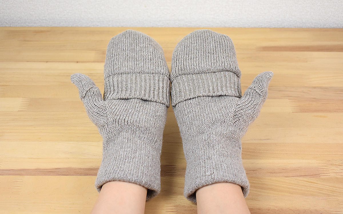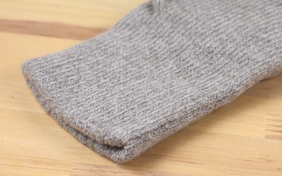 ウール入りの素材を編んで二重に仕立てたフリーサイズの同商品。生地に厚みがあり、長さも手首までしっかり覆えるほど余裕があります。ちなみに今回はペールブラウンを選びましたが、他にダークグレーとモカブラウンも展開されているので好みの色合いを見つけてくださいね。