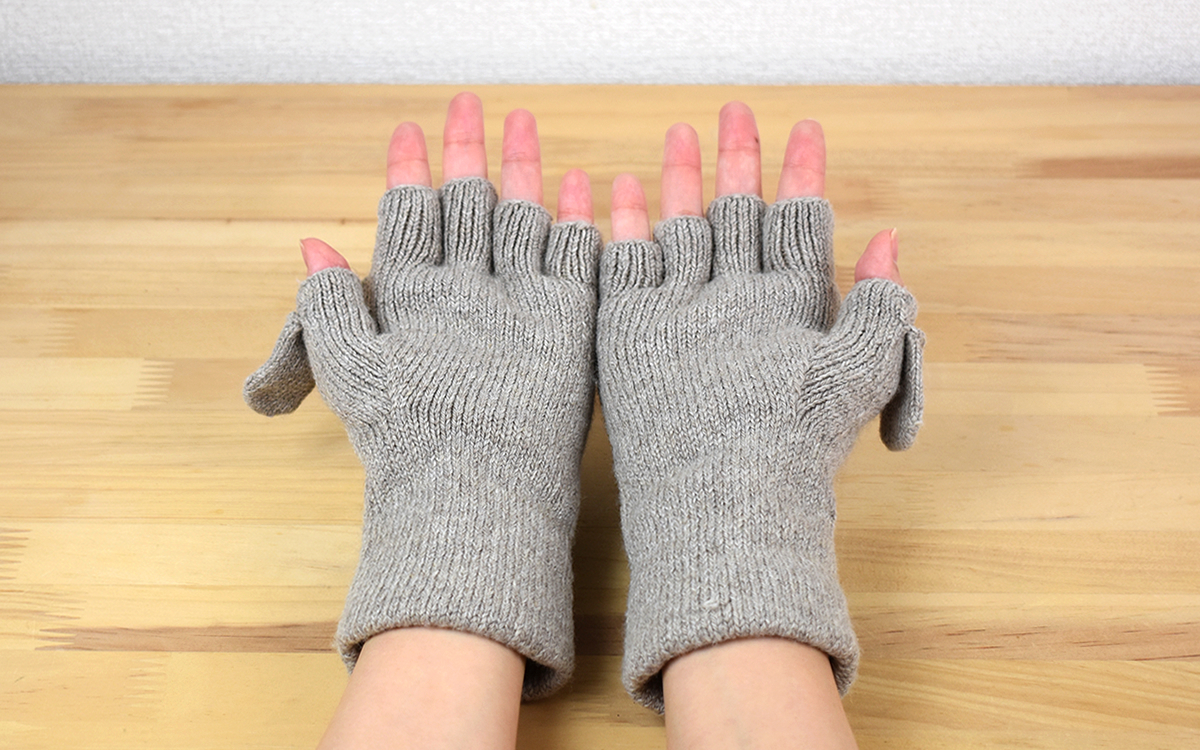 さっそく手袋をつけてみたところ、厚手の生地のおかげですぐにじんわりと温もりが。ごわごわした感触はなく、自然でなめらかな肌ざわりを感じさせてくれます。また指の半分ほどが露出するため、指先を動かしやすいのも注目ポイントの1つ。