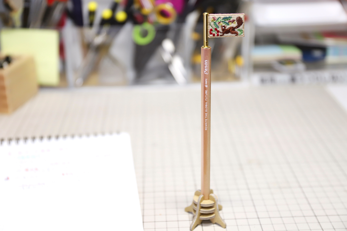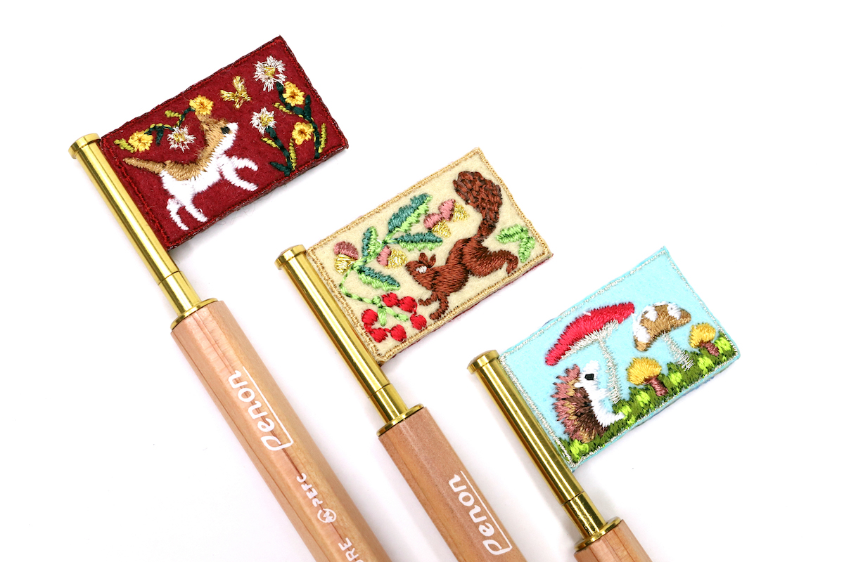 もうちょっと踏み込んでアクセントが欲しければ、「フラッグ」シリーズもあり。ペン後端からにょきっと刺繍の旗が伸びたルックスは、かなりユニークだ。旗の柄には、ハリネズミやリスといった刺繍映えするオシャかわな意匠に加えて、なぜかアゼルバイジャンやソマリアといったレアなものが揃っている国旗シリーズもラインナップしていて楽しい。