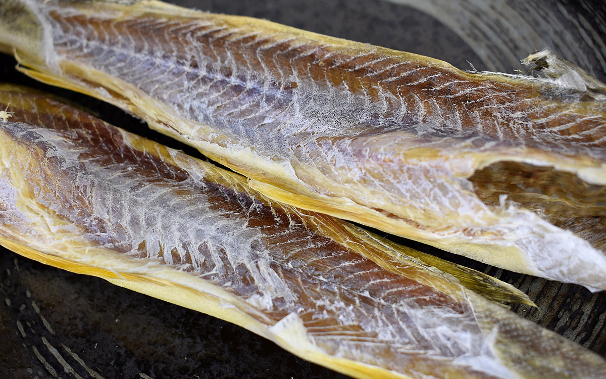 口に入れた瞬間、魚の旨味が口の中にじゅわっと広がりました。干して凝縮された身はとても硬いですが、噛めば噛むほど程よい塩気が溢れ出してやみつきに…。クセになる風味で、手が止まらなくなるおいしさが堪能できました。白身魚特有の淡白な味わいは、シンプルな塩味と相性抜群です。