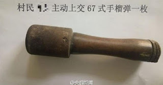 Μοιάζει αβλαβές, έτσι; Ο άνδρας κατάλαβε πως είναι ακριβώς το αντίθετο όταν του δόθηκε ένα φυλλάδιο ασφαλείας από την αστυνομία, στο σπίτι του στην Ανκανγκ της επαρχίας Σαανσί. Ανακάλυψε πως το μυστηριώδες αντικείμενο που χρησιμοποιούσε ήταν στην πραγματικότητα μια χειροβομβίδα.