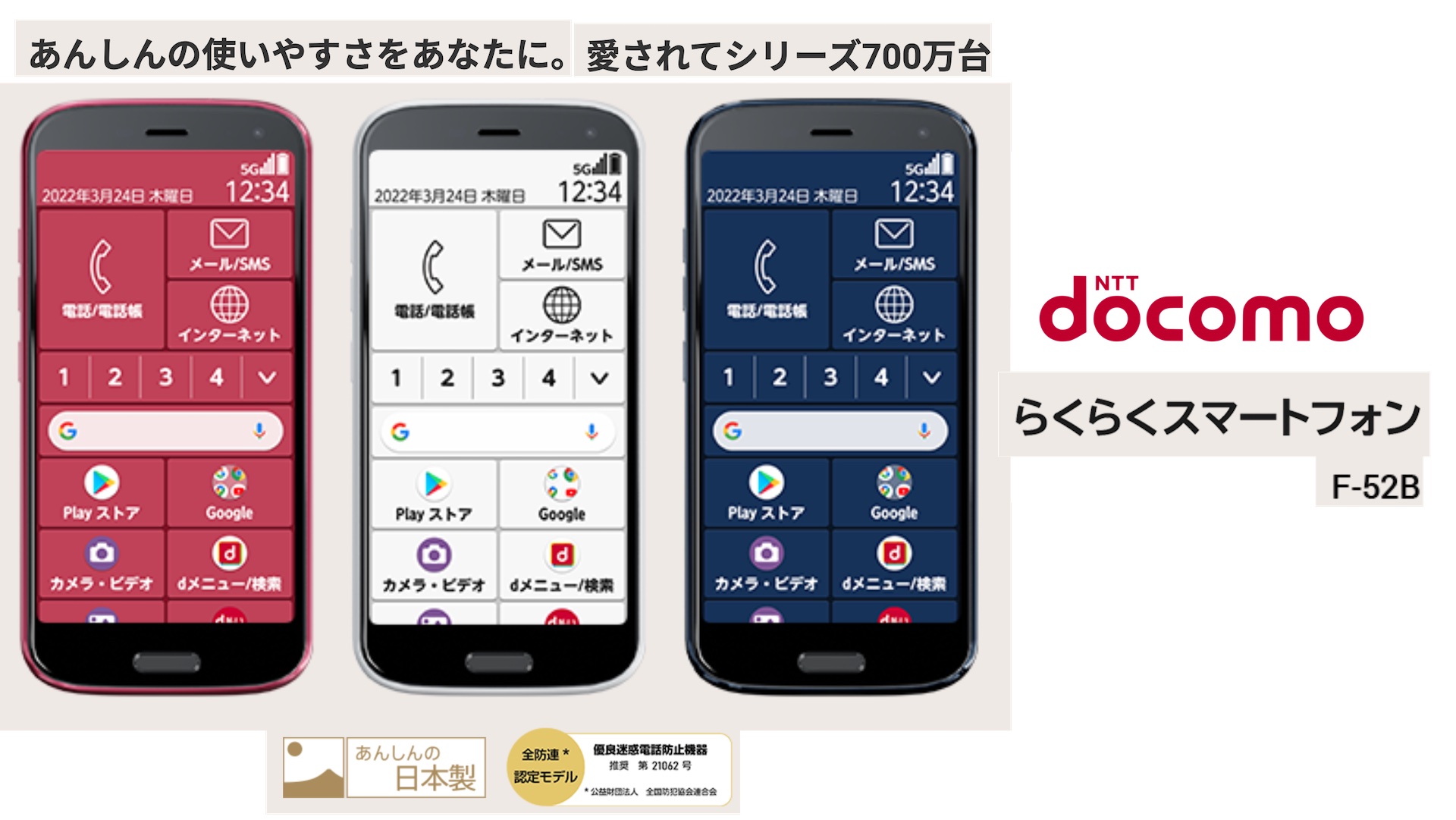 | docomo 5Gスマホ「らくらくスマートフォン F-52B」が登場!来春に発売予定 |