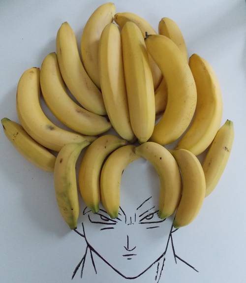「ドラゴンボール」のスーパーサイヤ人をバナナで……と、多くを語るまでもない写真が、