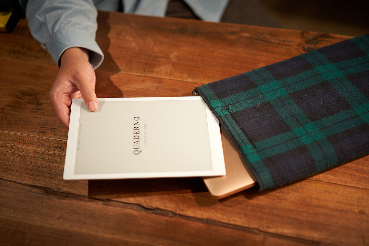電子ペーパー端末「QUADERNO(クアデルノ)」A5(Gen. 2)E Ink社のフレキシブル電子ペーパーを採用した端末。2018年末に初代モデルが発売。2021年7月には、第2世代である「Gen.2」シリーズ(写真)が発売された。ディスプレイが10.3インチのA5サイズと、13.3インチのA4サイズの2モデルを展開する。