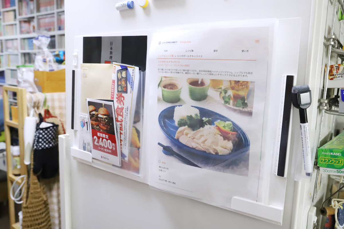 今冷蔵庫にマグネットで貼っている紙ものを全部ファイリングしてしまえば、設置場所もすぐに確保できるだろう。ひとまず必要と思うものを片っ端から放り込んでおけるため、「前にもらったクーポン、どこにあったっけ?」というときも、このファイルを開けばきっと見つかるはずだ。