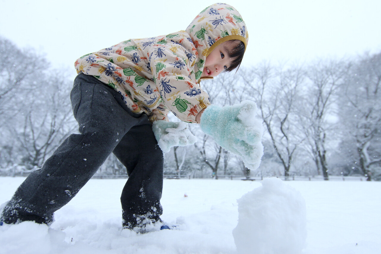 雪はどんどん大粒になり、14時頃には辺りがだいぶ白くなってきたので、近所の公園に雪遊びに行くことにしました。