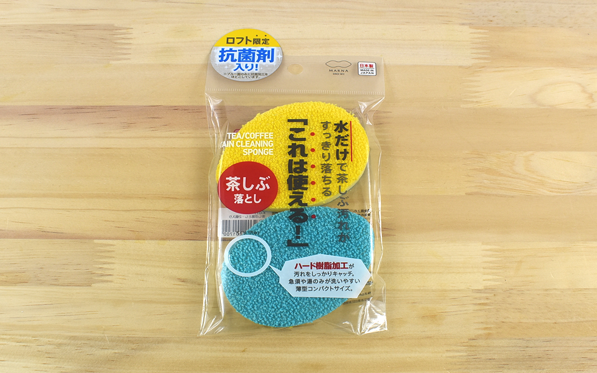 文房具からコスメ、インテリアなど様々なアイテムを取り扱う生活雑貨専門店のロフト。同社が販売している「抗菌茶しぶ落とし(2個入り)」は、洗剤をつけずに水だけで厄介な“茶しぶ汚れ”を落とせるグッズです。ちなみに同商品はマーナが展開中の「これは使える」シリーズの1つで、抗菌仕様はロフト限定。どれほどの実力を備えたスポンジなのか、じっくりチェックしていきましょう。