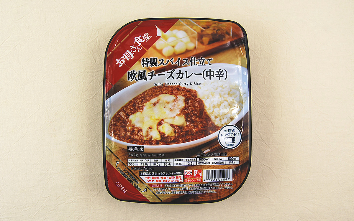 洋食屋などで見かけることが多い“欧風カレー”は、小麦粉を使ったルーやブイヨンなど出汁の旨味を活かした味わいが特徴。同商品はスパイスを効かせた中辛のルーに仕上がっており、上からナチュラルチーズがトッピングされています。
