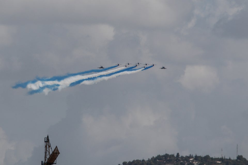 Λίγο λεπτά μετά τις 11:00, τα δύο Rafale και οι «Patrouille de France» σχημάτισαν τα χρώματα της Ελλάδας στον ουρανό, πάνω από την Ακρόπολη, αποχαιρετώντας για το ταξίδι της επιστροφής στη Γαλλία.