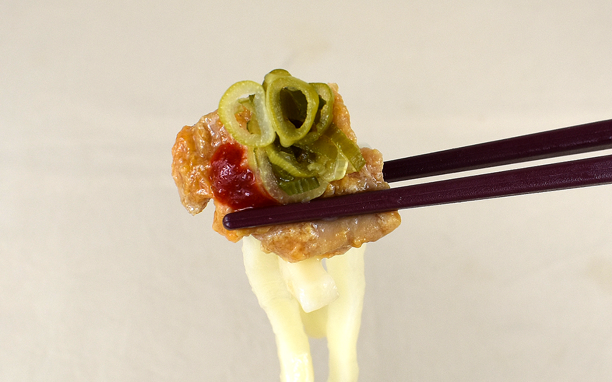 卵とうどんの組み合わせをしっかり味わったところで、「ピリ辛柚子スパイス」を加えてみましょう。うどんだしに溶かすと、ピリっとした刺激と柚子の風味が加わってクセになる味わいに。卵のまろやかな甘みやねぎの風味を損なうことなく、スパイシーかつ爽やかな味への変化を楽しめます。