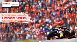 オランダGPにてフェルスタッペンが優勝しました!Hondaとしては1991年に並ぶシーズン8勝目。これを記念し、新しい壁紙をご用意しました。