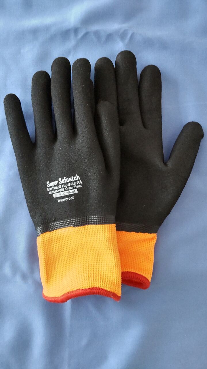 このグローブは内側が裏起毛になっている軍手にゴムをコーティングしたものですが、クロロプレングローブと比べて格段に温かく、ラインの感触はまあまあ分かり易く、ラインの滑りも悪くない感じです。それになんと言っても格段にお安い!