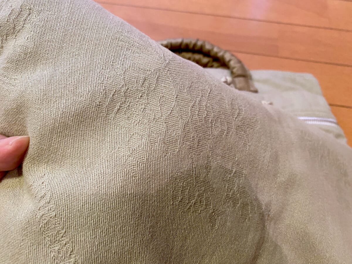 “製品染め”とは製品にしてから染めることで、まるで洗ったような味わいのある風合い。さらに、ファスナーなどの金属パーツも新品とは異なる味のある雰囲気に仕上がっているのが大きな特徴です。また、プロダクトの出来上がり時の色合いや縮み方、シワ感に個体差が現れ、同じアイテムでも一点一点表情が異なるのもポイントですね!