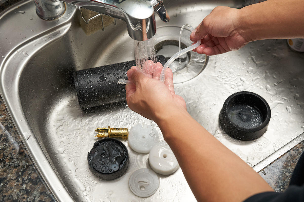 長く使うには手入れが欠かせない。その点、サッポロ生ビール黒ラベル「オリジナルビヤサーバー」はパーツを取り外して洗浄できるので衛生的、かつ実用的。乾電池をセットする「電子ユニット」以外は丸洗いでき、もちろんビールが通るチューブや配管パーツもしっかり洗える。また、接続パーツ、配管パーツ、保冷ケースなどはシンプルな構造なので手入れ自体も簡単。毎日でもストレスなく使える。