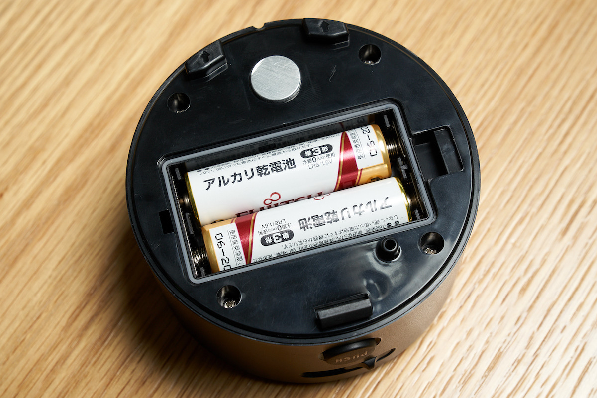 電源として使用するのは単3形アルカリ乾電池2本。コンセントにつなぐ必要がないので、庭やベランダはもちろん、キャンプやバーベキューといったアウトドアシーンでも活躍してくれる。