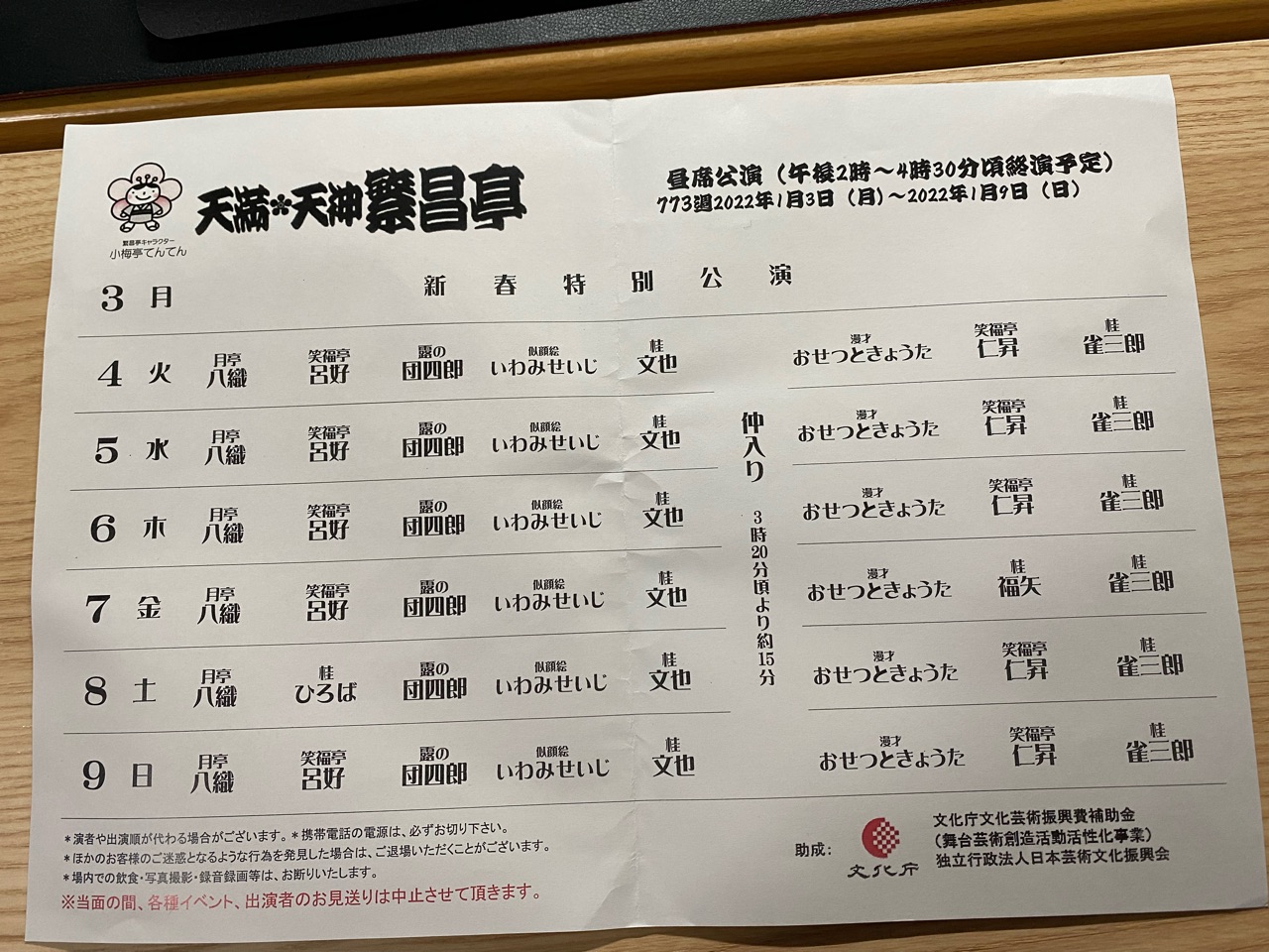 ただ寄席という場所には浅草に住んでたときに1回だけ行ったことがある。