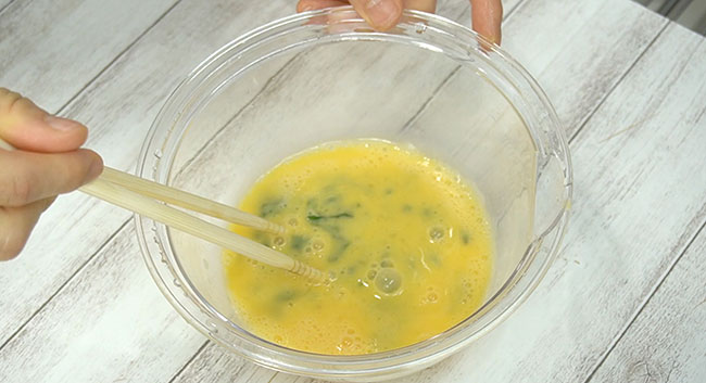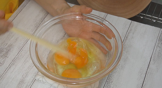 3. ボウルに卵3個と水大さじ3を加え、よくときほぐす。