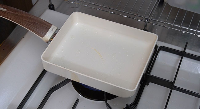 5. フライパンに油を敷き、弱中火の加減で温める。