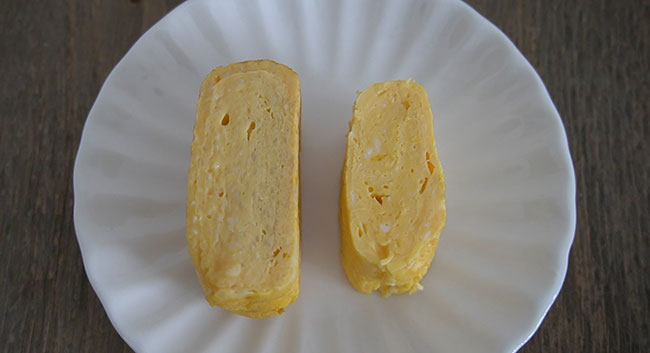 ↑左:長いも入りの卵焼き/右:長いもナシ&こしていない卵焼き