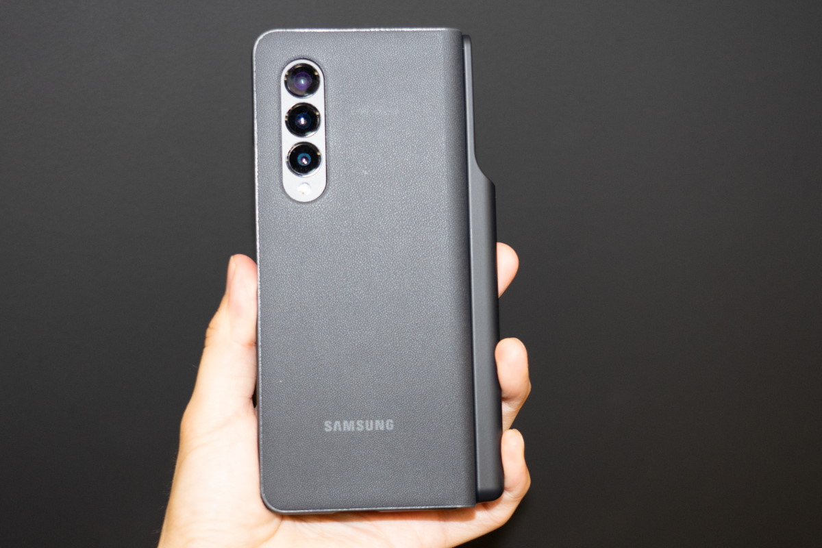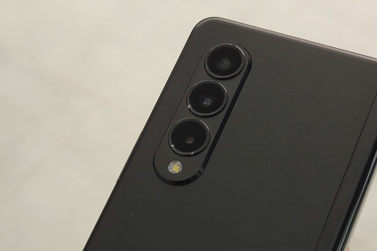 背面カメラは望遠、広角、超広角の3眼を装備。ただし、背面カメラのハードウェア自体は前世代のGalaxy Z Fold2 5Gから変わっていません。