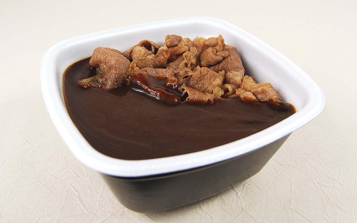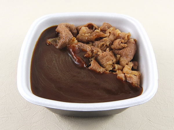 今年4月にリニューアル復活を遂げた「黒カレー」シリーズ。黒カレーに牛肉と玉ねぎをトッピングした「牛黒カレー」なども発売されていますが、「牛カルビ黒カレー」の特徴はその名の通りカルビ肉が使われている点です。テイクアウトで購入するとカレールーは別の容器に分けてあるため、ご飯とカルビ肉にルーを流しこんでいただきましょう。