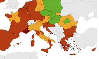 Το Ευρωπαϊκό Κέντρο Πρόληψης και Ελέγχου Νόσων (ECDC) δημοσίευσε σήμερα, Πέμπτη, τον αναθεωρημένο χάρτη που αποτυπώνει την επιδημιολογική εικόνα του κορονοϊού στα κράτη μέλη της Ευρωπαϊκής Ένωσης.